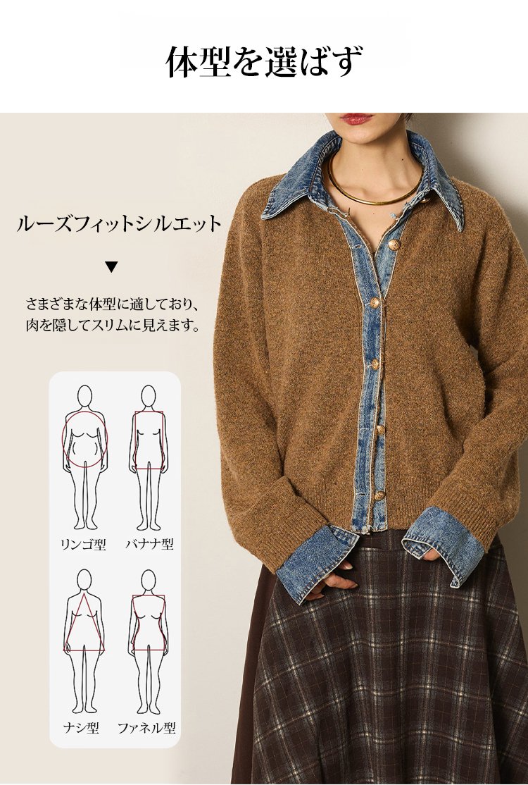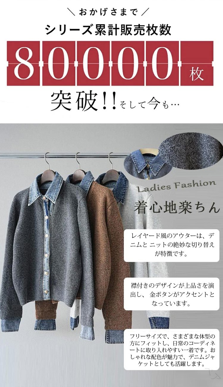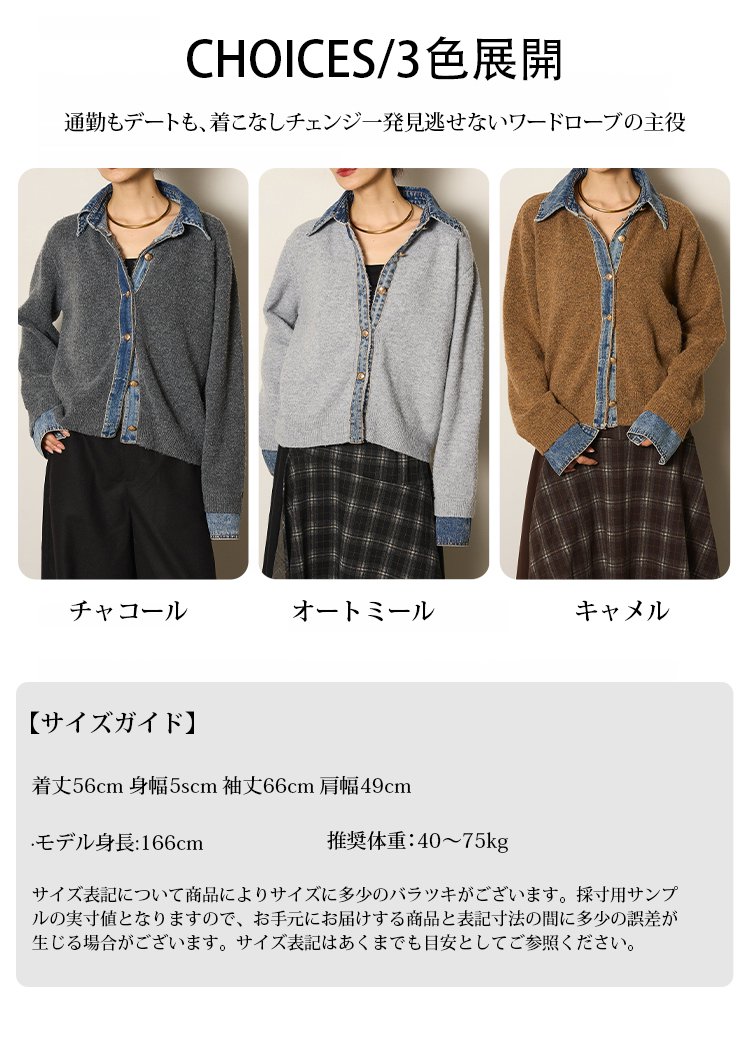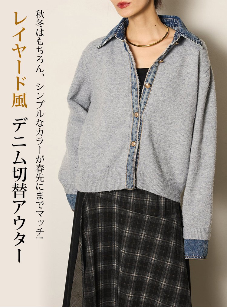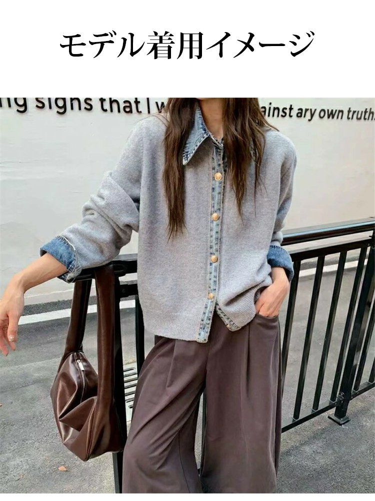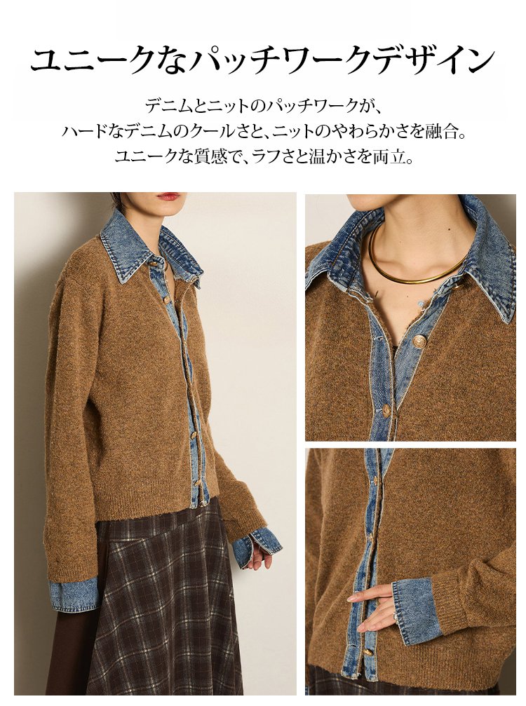 デニムパッチワークニットカーディガン
