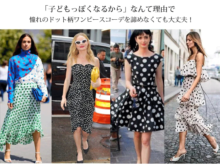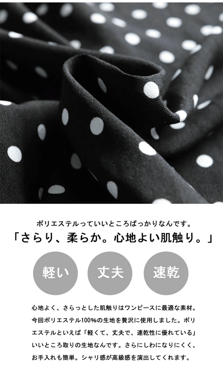 黒のドット柄九分袖ワンピース