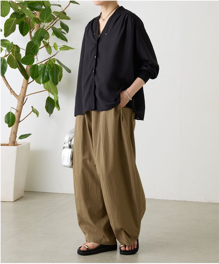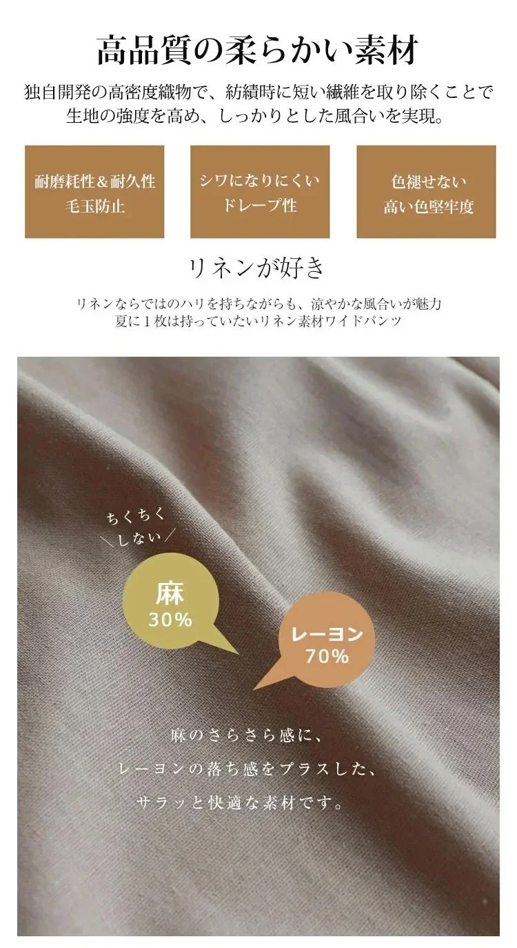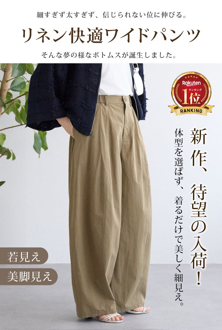 レディースリネンルーズワイドパンツ