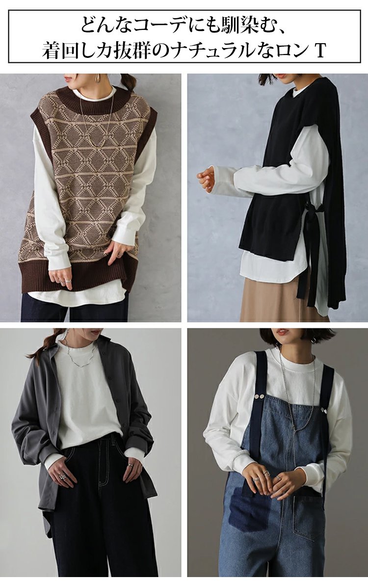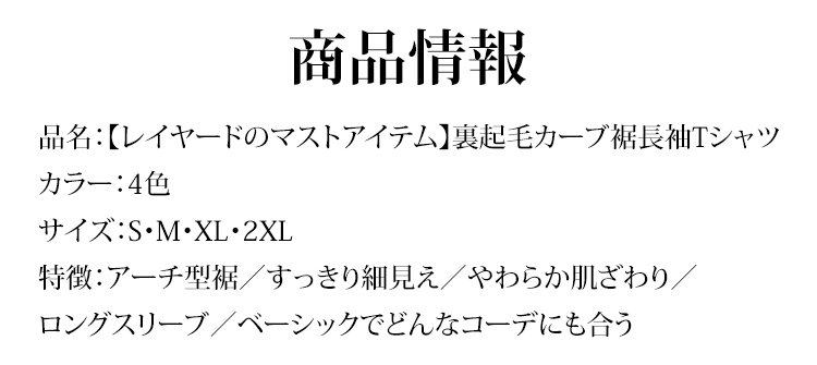 【レイヤードのマストアイテム】裏起毛カーブ裾長袖Tシャツ